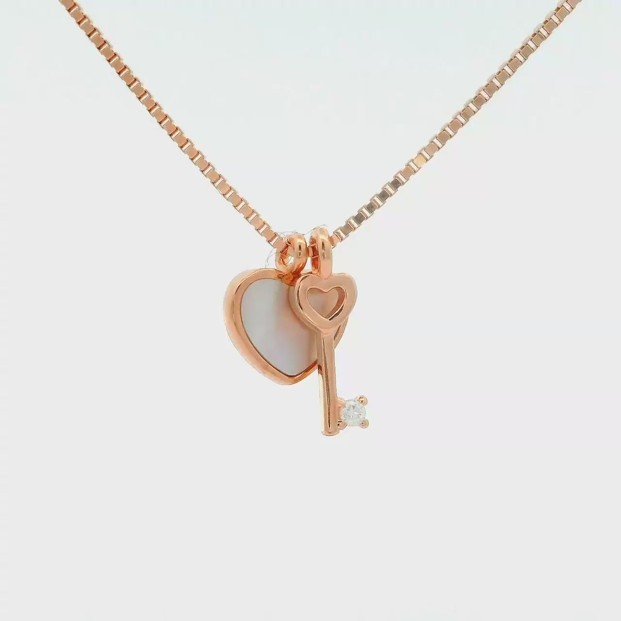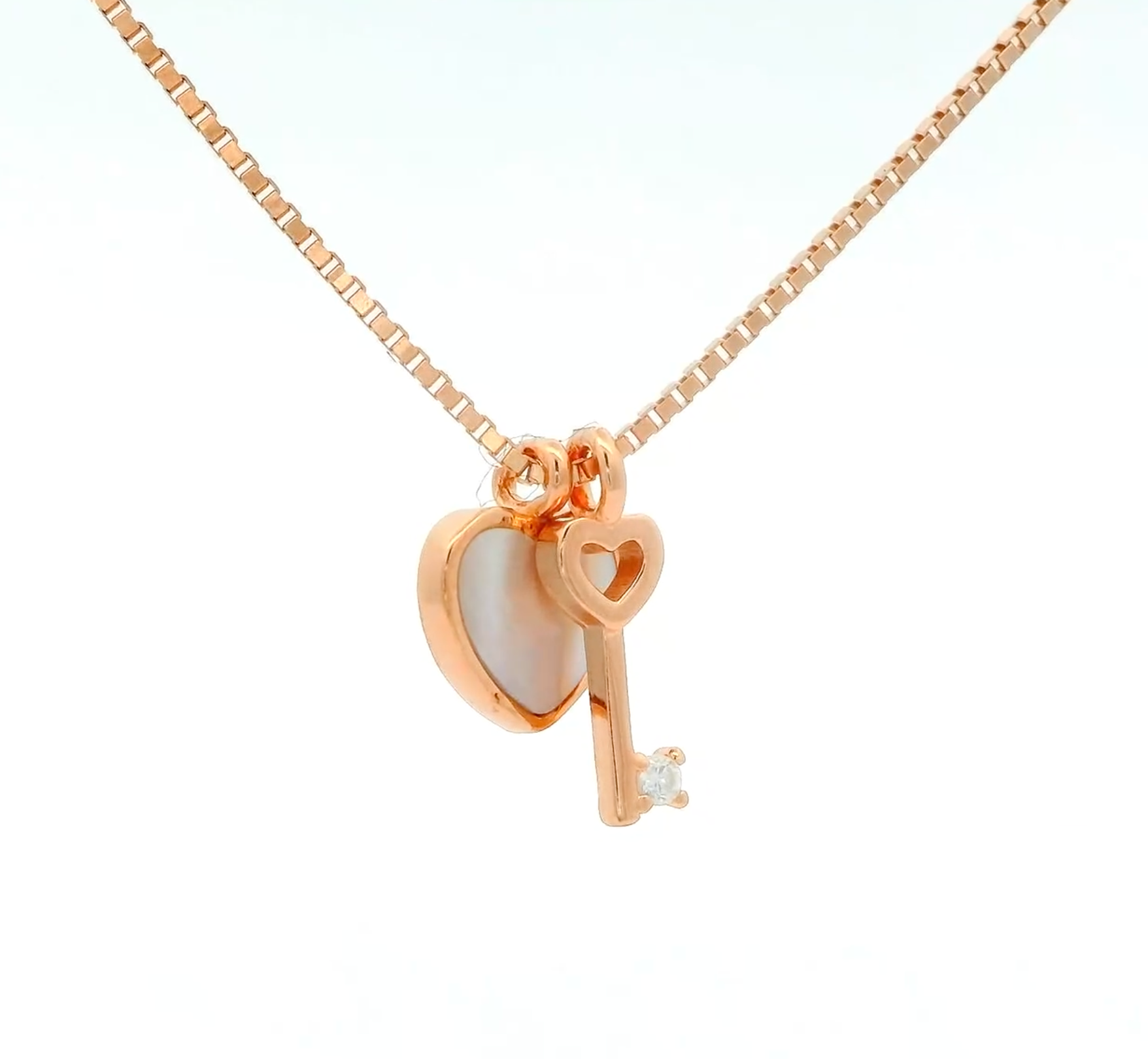 - Details: A heart-shaped locket paired with a finely crafted key charm, both enhanced with intricate designs and subtle pearl accents for a touch of sophistication
