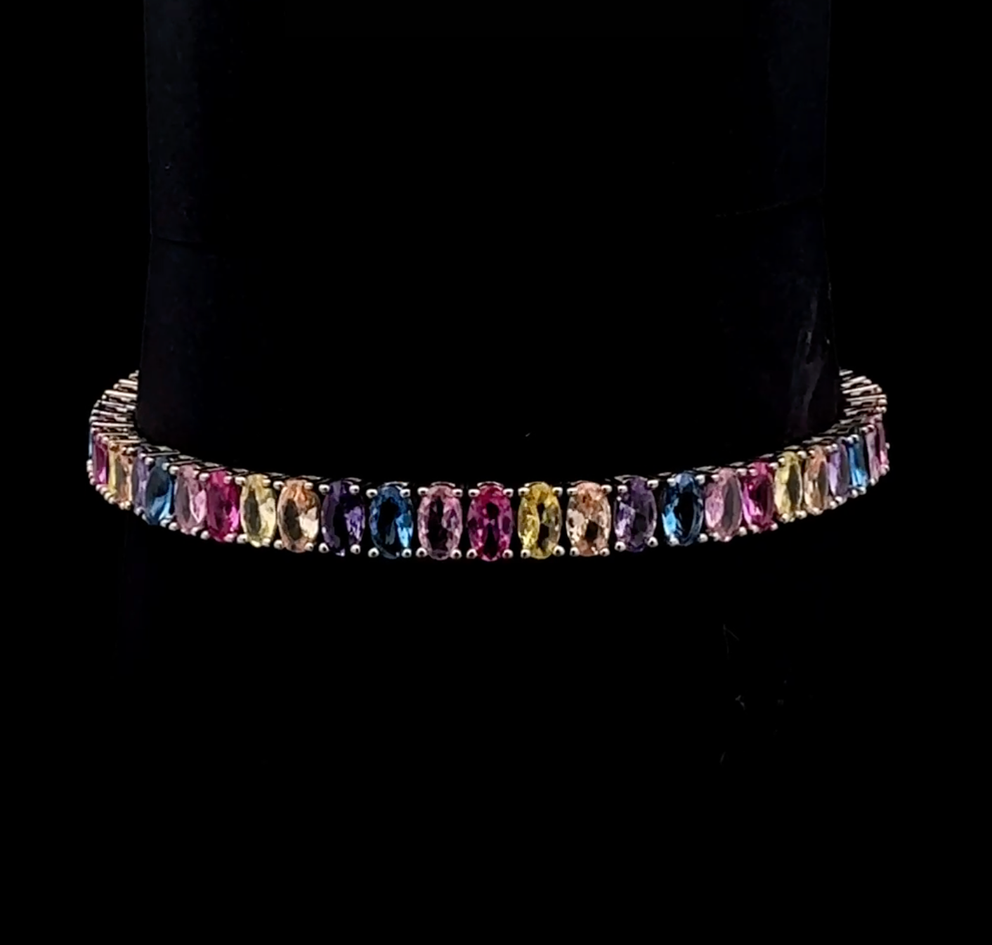 This bracelet brings together the elegance of sterling silver and the vibrant charm of colorful gemstones. Its versatile design complements both casual and formal outfits, making it a must-have for anyone who loves timeless yet playful jewelry.
